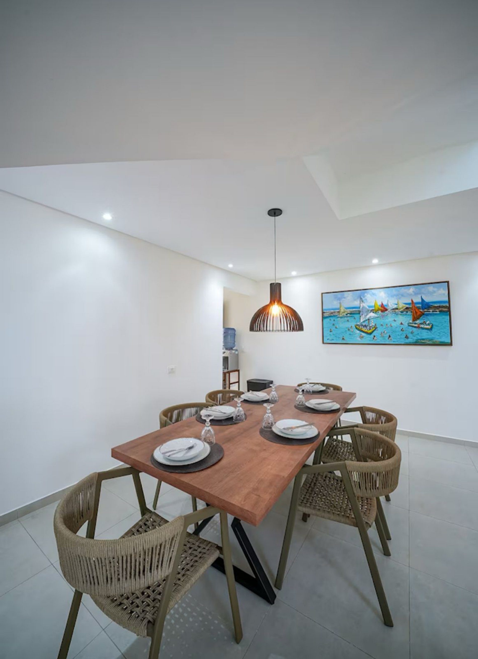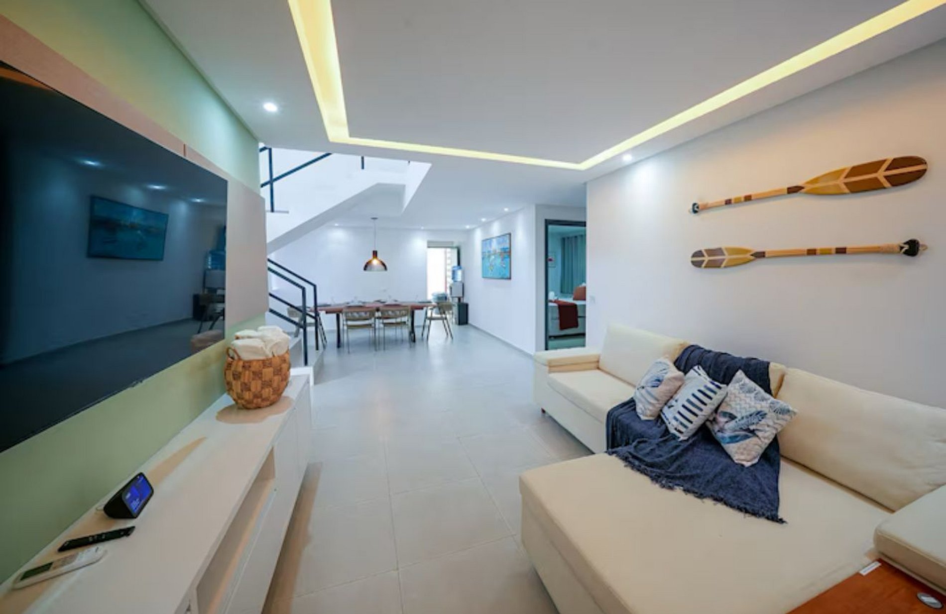 - Sala de estar e jantar integradas, Smart TV 58", sofá, adega, mesa para 6, ar-condicionado, Alexa;